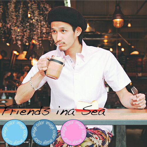 かりゆしウェア メンズ アロハシャツ 沖縄版 かりゆし ココナッツジュース シャツ 結婚式 Friends in a Sea 全3色 人気かりゆしウェアがリニューアル 半袖 3L 大きいサイズあり 送料無料